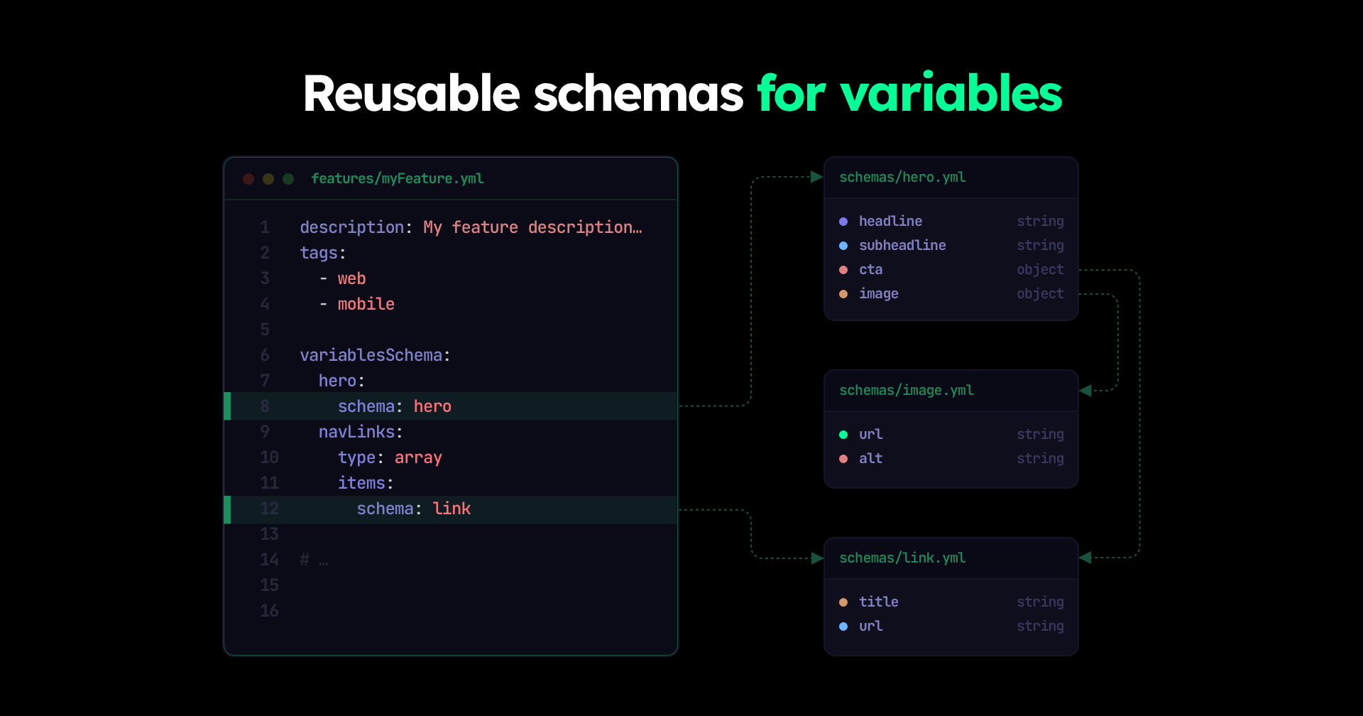 When your application configuration grows, you may find yourself repeating the same schema definitions across multiple features, and also across multiple variables.